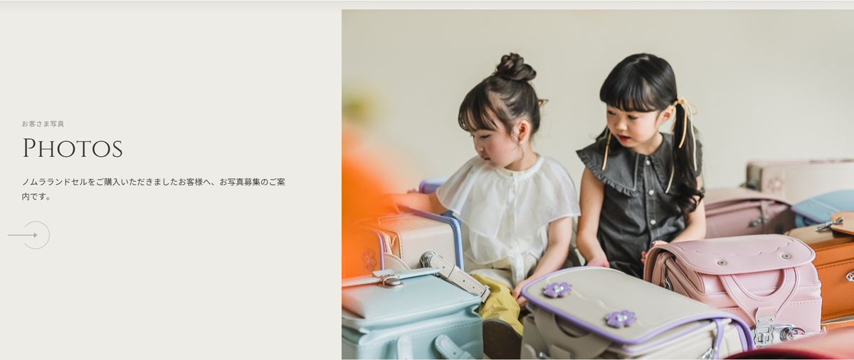 こちらはノムラランドセルをご購入いただきましたお客様へ、お写真募集のご案内となります。